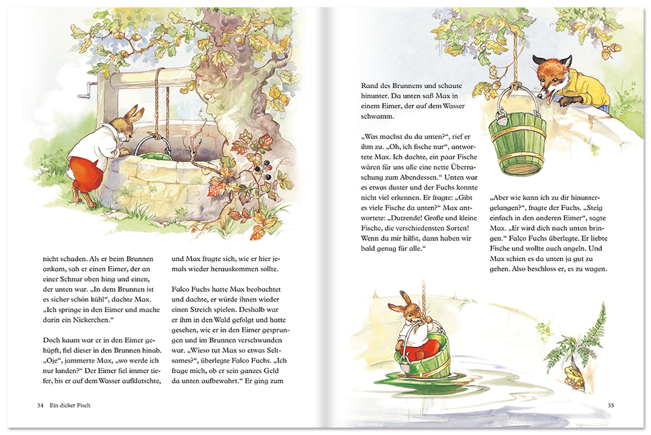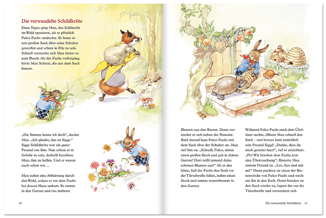 Der Hase Max erlebt viele Abenteuer. Er ist ein richtiges Schlitzohr und bringt die anderen Waldbewohner mit seinen cleveren Streichen immer wieder zur Verzweiflung. Er ist ihnen stets eine Nasenlänge voraus ... Die lustigen Geschichten sind angelehnt an die Onkel-Remus-Bücher des amerikanischen Journalisten und Volkskundlers Joel Chandler Harris und durchgehend farbig illustriert. Hardcover mit Halbleinen-Imitation.